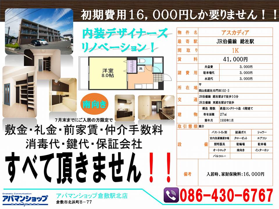 ◆◇アパマンショップ倉敷市内6店舗展開◇◆